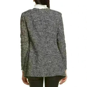 NWT AKRIS Punto Black & White Tweed Fringed Waterfall Front Open Jacket 6 $1490