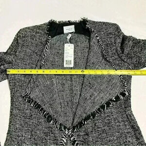 NWT AKRIS Punto Black & White Tweed Fringed Waterfall Front Open Jacket 6 $1490