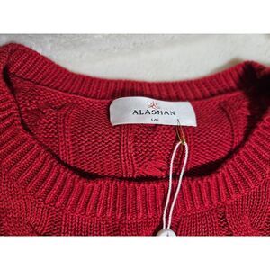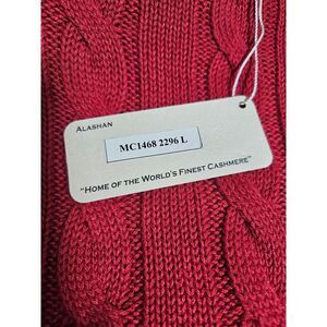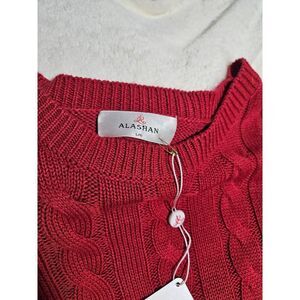 This Alashan men's sweater, size L, is a classic addition to any wardrobe. The cable-knit pattern and round neckline give it a timeless look that can be dressed up or down. The sweater is made of a blend of cashmere and cotton for a soft and comfortable feel. It comes in a beautiful shade of classic red that is perfect for any occasion. This item is perfect for fall and winter or any outdoor activity like walking or golf.