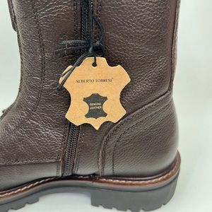 NWT ALBERTO TORRESI GENUINE LEATHER MidCalf Front Side Zip Brown Boots 37 US 6.5