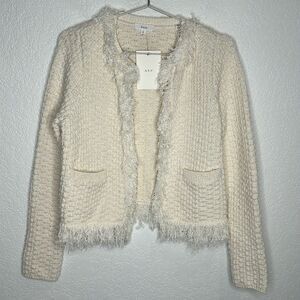 NWT A.L.C. April Fringe Open-Front Cardigan Cream Small
