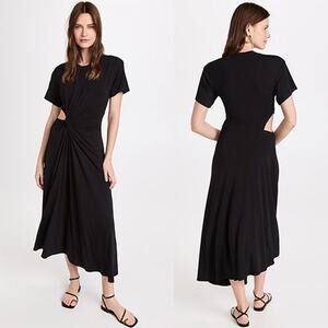 NWT A.L.C. Bridget Twisted Cut-Out Short Sleeves Crew Neck Black Midi Dress