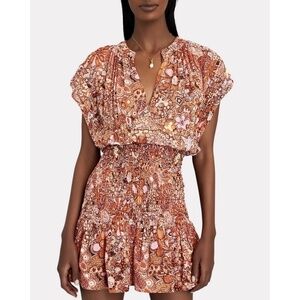NWT A.L.C. Carly Smocked Print Silk Mini Dress in Sorbet Multi Sz. 10