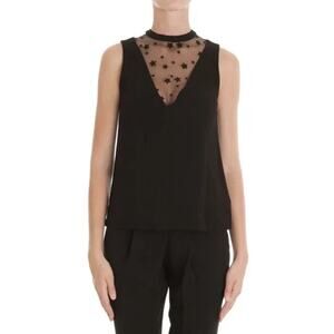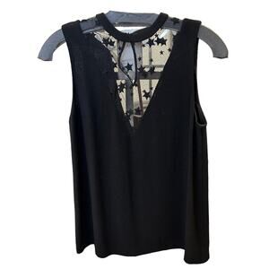 NWT ALC Harlow Crepe Star Mesh Sleeveless Top Womens 4 Black