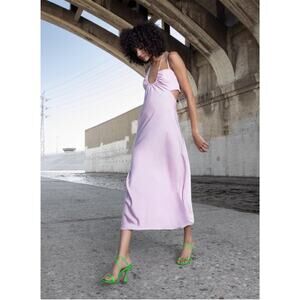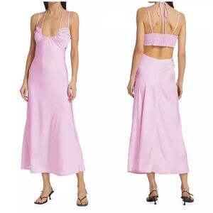 NWT ALC Lavender Lilac Purple Halter Neck Cutout Smocked Midi Dress Womens 8