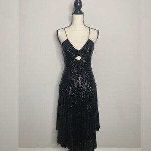 NWT A.L.C Lou Black Sequined Keyhole Midi Cocktail Dress