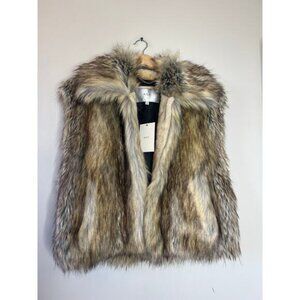 NWT A.L.C. Naya Faux Fur Vest Point Collar And Sleeveless Brown Coyo Sz: Medium