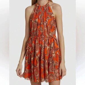 NWT A.L.C. Orange Bella Silk Halter Mini Dress Size 2 Lined $495