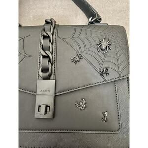 NWT ALDO Satchel Top Handle Bag Black Spider Web Halloween Purse Chain