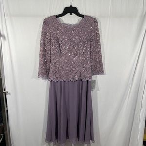NWT ALEX EVENINGS [ 6 ] Sequin Lace Mock Midi Cocktail Dress in Icy Orchid #S391