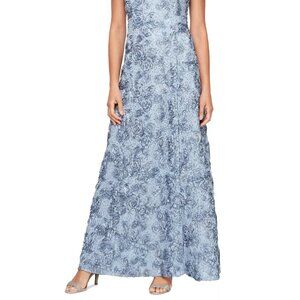 NWT - ALEX EVENINGS - ROSETTE SEQUIN A-LINE GOWN - HYDRANGEA BLUE, SIZE 10 - MOTHER OF THE BRIDE / GROOM