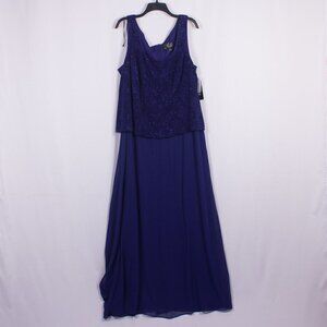 NWT ALEX EVENINGS Scoop Neck Jacquard Glitter Embellished Chiffon Dress Size 22W