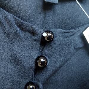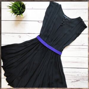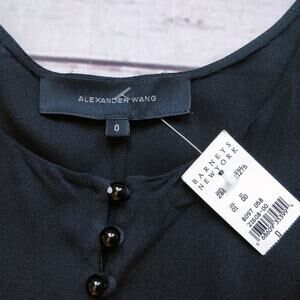 This is a new-with-tags Alexander Wang dress in size 0. The paint has chipped from one of the buttons - please see the pictures. This is a stunning, timeless dress with a purple silk contrast belt. Measures approximately 16" across chest, 12" across waist, and 36" in length.
