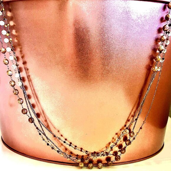 NWT ALEXANDRA'S ACCENTS 3-Strand Flapper Necklace Amber Crystal Bead Chains 42"