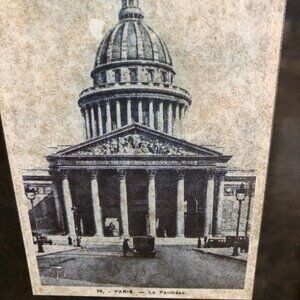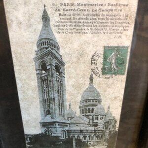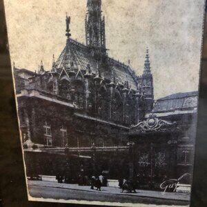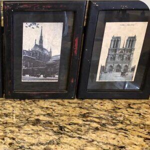 Gorgeous set of 4 Old World Sepia Prints of Famous French Architecture in Paris France in the late 1800s to early 1900s. Framed with glass and black rustic wooden frames...