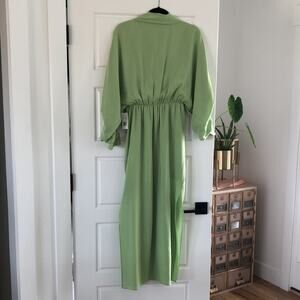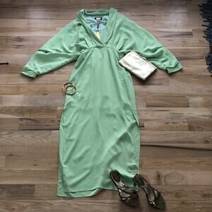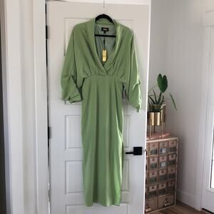 Gorgeous spring green Draped Dolman Lapel Maxi Dress. The elastic waist is forgiving. Beautiful dress perfect for so many events easy to dress up or dress down depending on your needs. Breathable fabric for summer events.