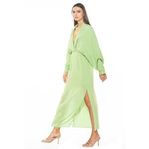 NWT - ALEXIA ADMOR Kacey Draped Dolman Lapel Maxi Dress Green Sz. 2