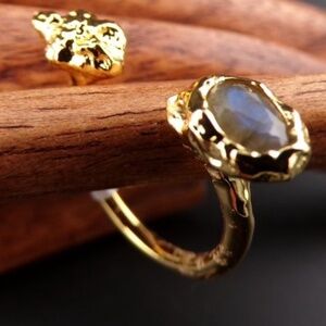 NWT ALEXIS BITTAR Asterales Nugget 14K Goldplated & Labradorite Open Ring