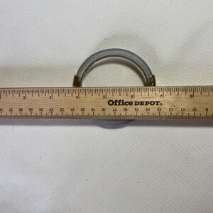 Magnetic closure. Oval shaped. Dimensions: ~2 1/4” x 2 1/2”.