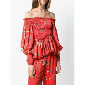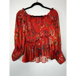 NWT ALEXIS ELsa Botanical Red Off-the-Shoulder Floral-Print Top L