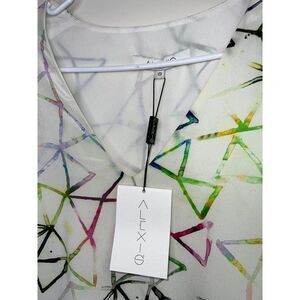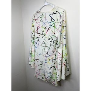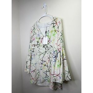 NWT ALEXIS White Silk Multicolor Abstract Print Bell Sleeve Shift Dress …