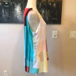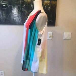 NWT ALFANI Women’s Sleeveless Long Tunic Sheer Color Block Print w/Tank-Size M