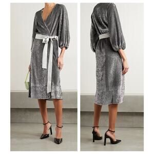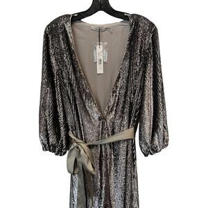 NWT ALICE + OLIVIA Anne Sequin Long Sleeve Wrap Dress Size 2