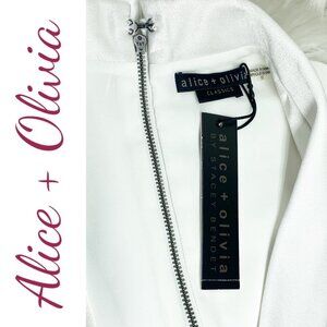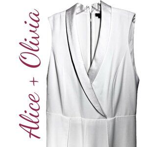 NWT ALICE + OLIVIA Bebe White Shawl Collar Split Leg Sleeveless Jumpsuit Size 12