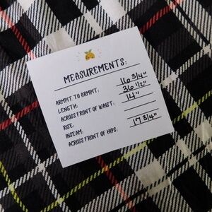 High turtleneck style neckline ~ Long sleeves ~ Straight hemline ~ Exposed back zipper ~ Mini length ~ Fitted sheath or bodycon silhouette ~ Body & skirt are lined … sleeves are unlined ~ Soft knit fabric … the fabric does have stretch ~ Plaid pattern in black, gray, white, red & yellow … the print name is “Freedom Plaid Black”