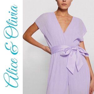 NWT ALICE & OLIVIA Mitsue Plisse Pleated Lavender Pastel Wide Leg Jumpsuit, Sz 2