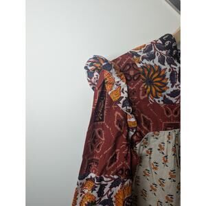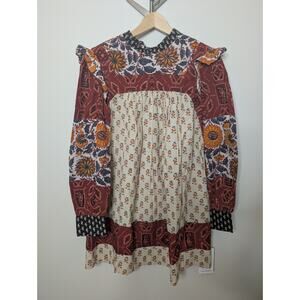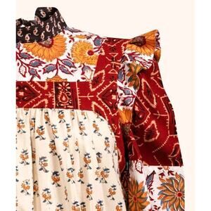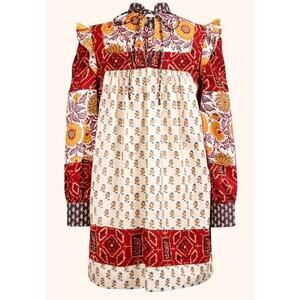 NWT ALIX OF BOHEMIA Sophia Patchwork Ruffle Shoulder Long Sleeve Mini Dress S