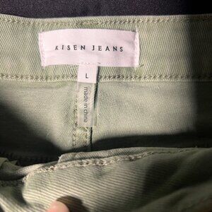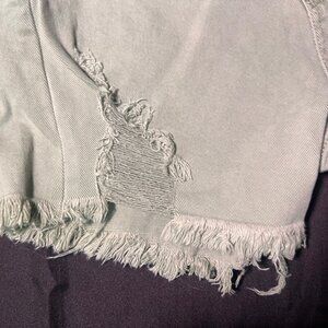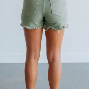 Step into style with the NWT Aliyah Risen Shorts, now available in a chic Olive color in size Large. These trendy shorts are designed to flatter with a high-rise waist and a contemporary frayed hem that adds a touch of edginess to your casual look. Crafted from a durable and comfortable cotton blend, they're perfect for those sunny days out or relaxed afternoons. The Olive hue is versatile and on-trend, easily pairing with a range of tops for a cohesive outfit. With a traditional button closure and a five-pocket design, these shorts combine both fashion and function. Embrace the season with these must-have Aliyah Risen Shorts and elevate your wardrobe with effortless style.