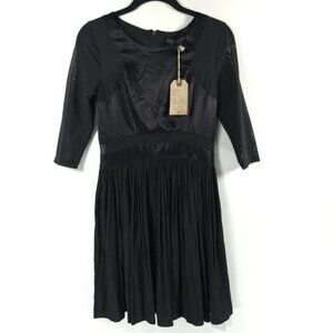 NWT ALL SAINTS SPITALFIELDS ARMOURE Mini DRESS Black Semi Sheer Top Pleated Skirt Bateau Neckline WD079B Size 4