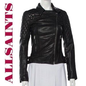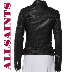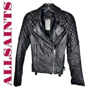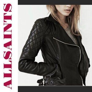 NWT ALL SAINTS Walker Black Quilted Leather Moto Biker Jacket, Size 2