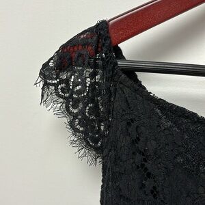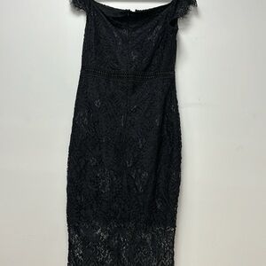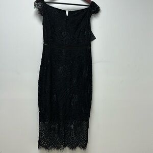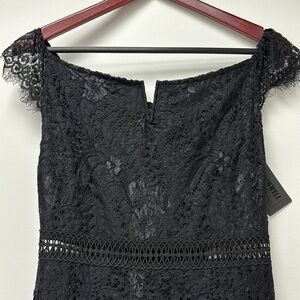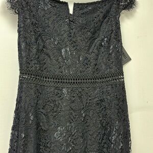 NWT ALLANDWELL Women's Elegant Floral Lace Round Neck Lace Dress size L black