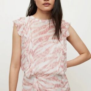 NWT ALLSAINTS Hali Areias Mini Dress Pink Ruffled Ruched UK 10 US 6