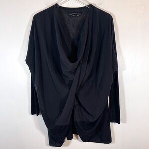 NWT ALLSAINTS ITAT ASYMMETRICAL TOP Black 100% Silk 100% Merino Wool Shrug XS