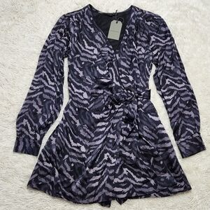 NWT ALLSAINTS Irina Remix Romper UK 10 / US 6 Gray Animal Print Wrap Front