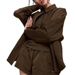 #AloYoga #SocialiteShacket #EspressoShacket #UnisexLayering #SizeXS #NWT #Athleisure #LightweightJacket #StreetStyle #LayeringPiece #CasualChic #SoldOut