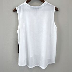 NWT ALWAYS INDIGO WOMENS MEDIUM WHITE SLEEVELESS BLOUSE V NECK QUARTER BUTTON