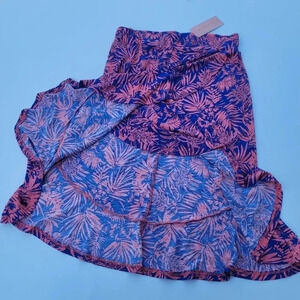 NWT AMANA Women's Floral Wrap Skirt Stretch Ruffle Pink Blue Elastic Waist sz L Sk2