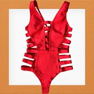 NWT AMAZING WOW Couture Bright Red SEXY Strappy One Piece Size Medium