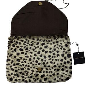 America & Beyond Beaded Leopard Print Faux Fur Clutch Purse w/ Chain Strap