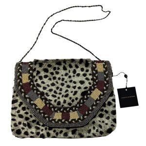 NWT AMERICA & BEYOND Beaded Envelope Clutch Crossbody Bag Boho Cheetah Print