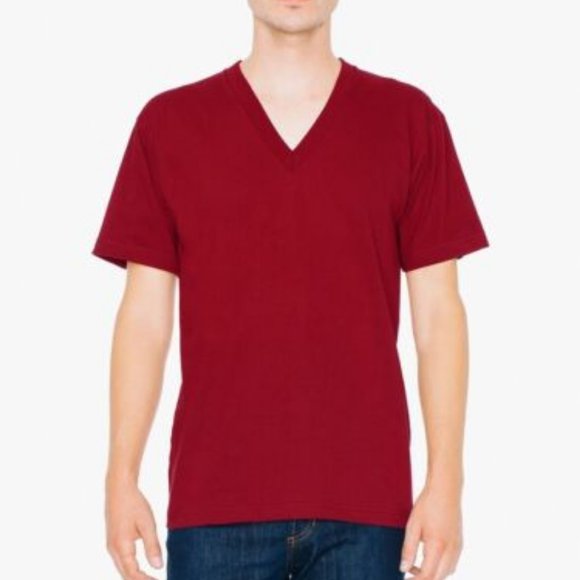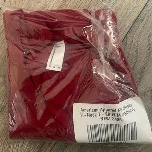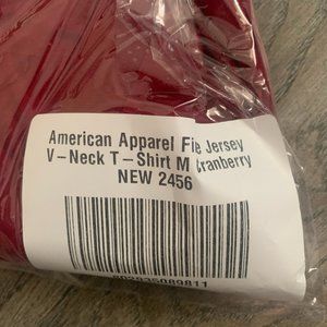 NWT (NEW IN BAG) AMERICAN APPAREL FINE JERSEY SHORT SLEEVE V-NECK T-SHIRT COLOR CRANBERRY SIZES XXS & MEDIUM.