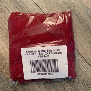 NWT AMERICAN APPAREL FINE JERSEY SHORT SLEEVE V-NECK T-SHIRT CRANBERRY XXS, MED.