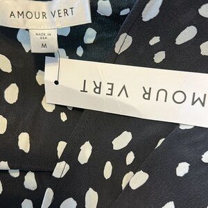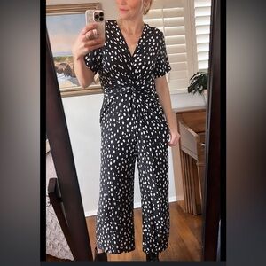 NWT AMOUR VERT Fantasia Washable Silk Jumpsuit Black White Medium