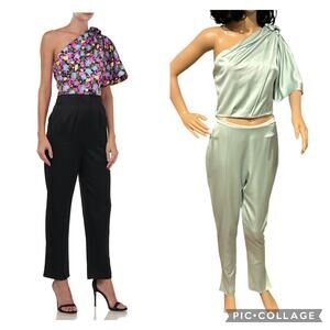 NWT AMUR April top one shoulder drape & matching pants green size Small