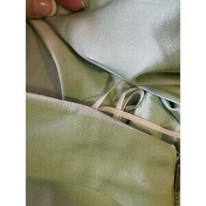 Beautiful matching sage green pants with side hidden zipper closing, seams down the front middle of legs and small slits at the side of ankles