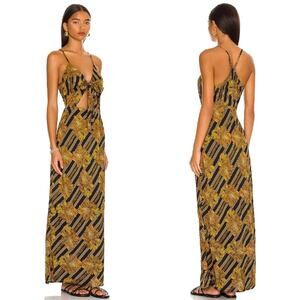AMUSE SOCIETY Palm Tied Dress in Black. Brand new with tag. Black with gold palm leaves all over print.